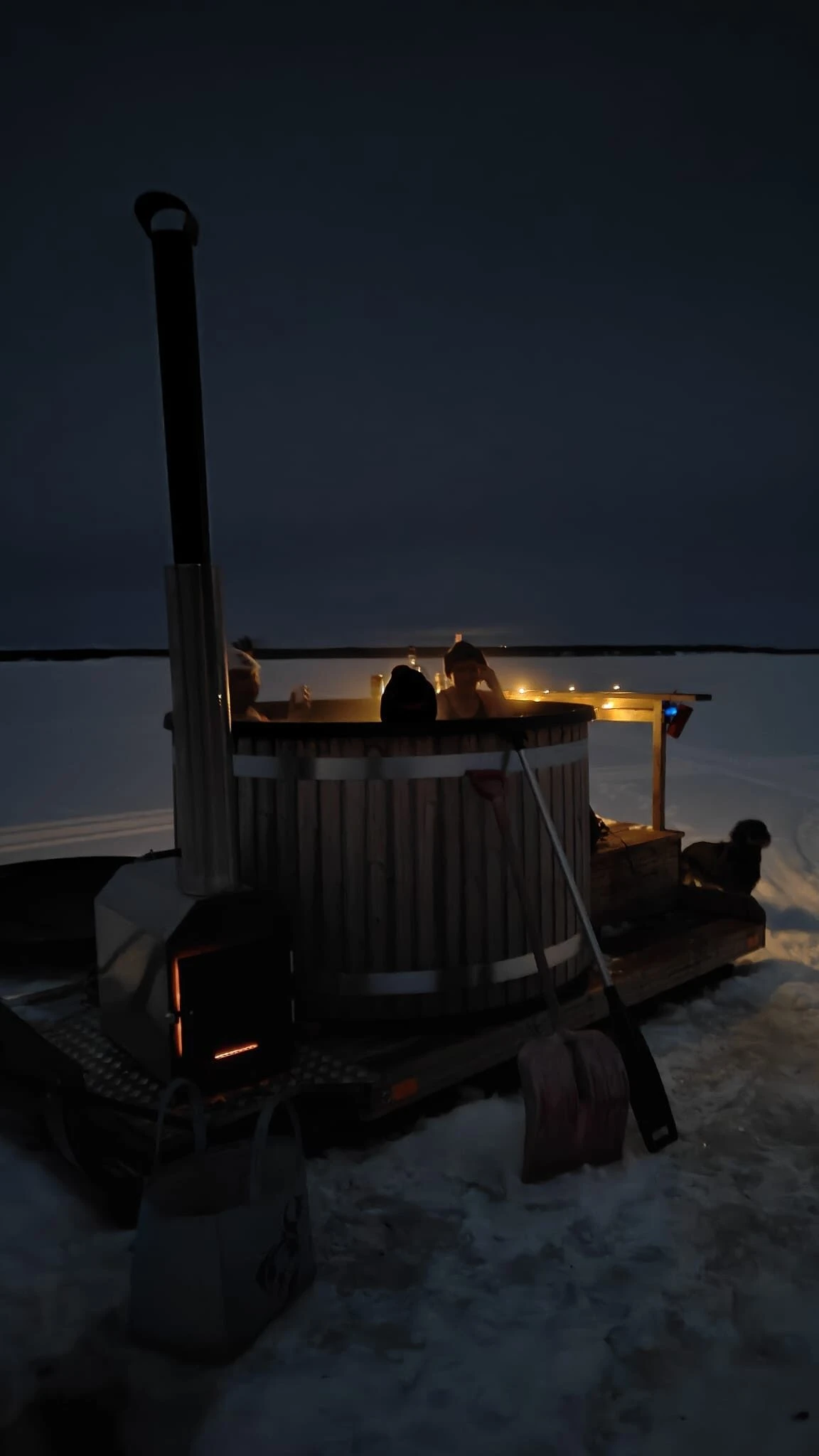 The next step could be a dip in fresh, gurgling, even healing water. Did you know that dipping in the cold water has been found to increase the secretion of pleasure hormones and decrease stress hormones! After that is nice to feel the warmth of the hot tube in your body and fresh winter air in your head.