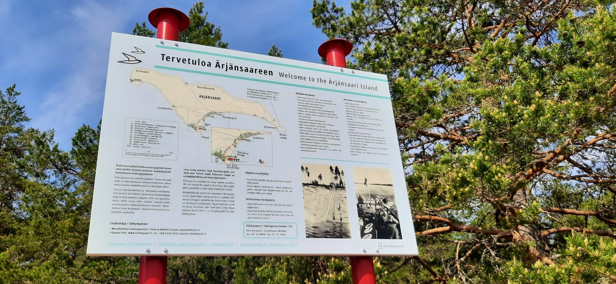 Led by a guide, participants will take a walk of approximately 5 km, during which they will hear about the island’s colourful history while admiring the wide lake scenery from the high cliffs—views that inspired poet Eino Leino as he sailed to Ärjä from Hövelönlahti in Paltaniemi along the Kajaani River. You’ll also hear how the Ancylus Lake, the Sámi, the Reindeer Church, tar-burning pits, tar rowers, lake pirates, UPM’s Kajaani Paper Mill, lichen gathering, architect Eino Pitkänen, Greenpeace, the Ministry of the Environment, Metsähallitus’ Parks & Wildlife services, paragliders, geocaches, sheep herders, and many stories both true and legendary are all connected to the history of Ärjänsaari.