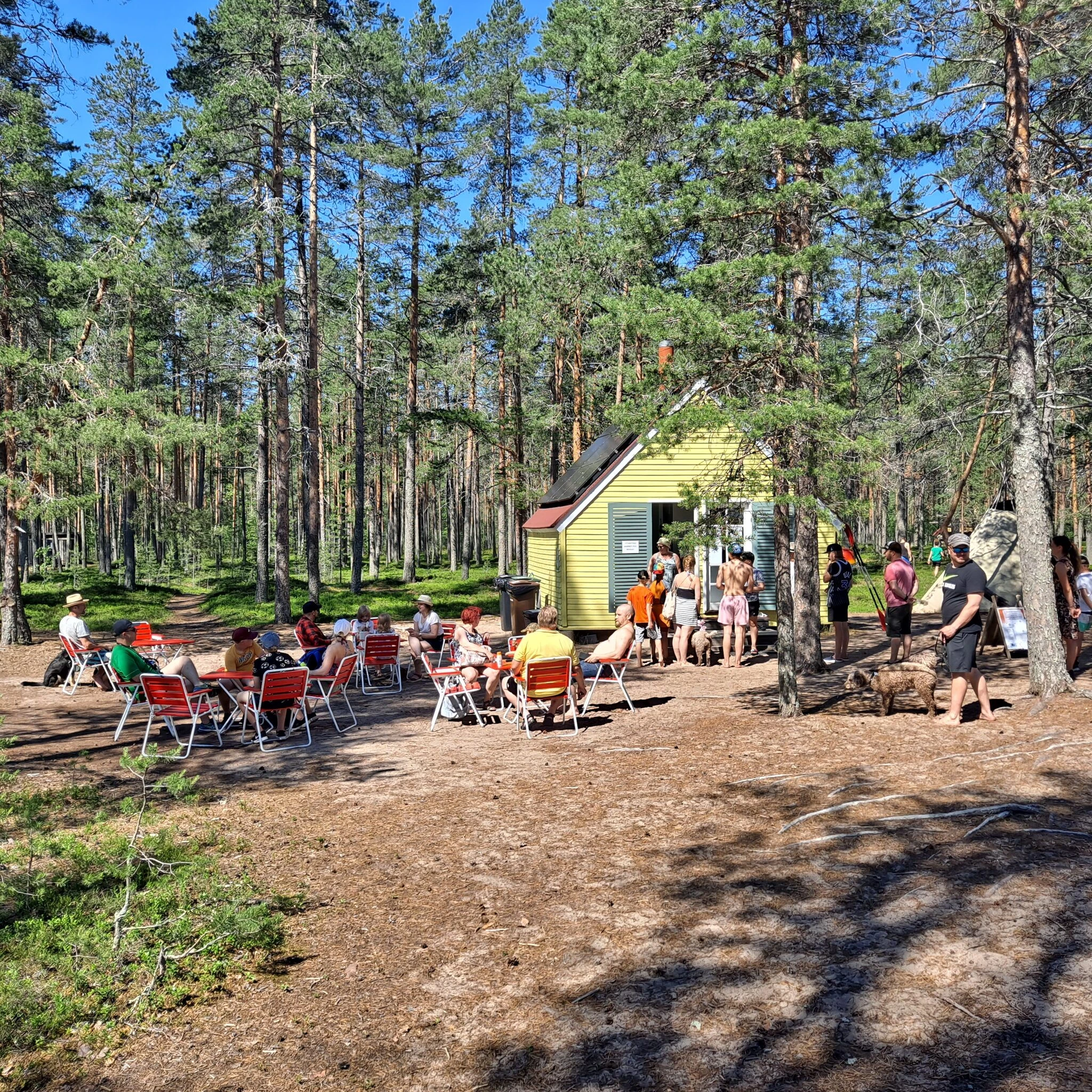 The Ärjänsaari summer kiosk is open daily from June to August, 11:00–16:00, and it also serves visitors during the event. The kiosk rents out kayaking equipment, SUP boards, bicycles, a tent sauna, and the former representative sauna of the paper mill in Vierasniemi, where President Kekkonen once bathed. Cabins can be rented from Metsähallitus’ Parks & Wildlife services, and camping is free of charge.