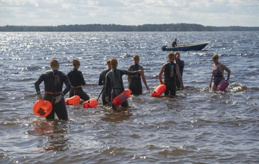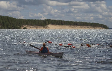 This open water swimming experience is approximately 10 km long and is designed for experienced swimmers. The route will circle the sandy beaches and high sand cliffs of Äirjä Island, located near the widest inland waters of Finland, the Ärjänselkä.